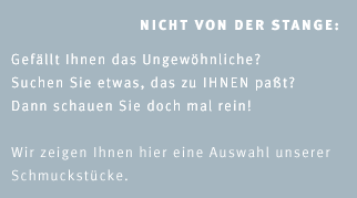Im Dezember wird die Schmuckgalerie auch Dienstags von 11:00 bis 18:00 Uhr geöffnet sein. Viele Grüße, Ute Münchinger